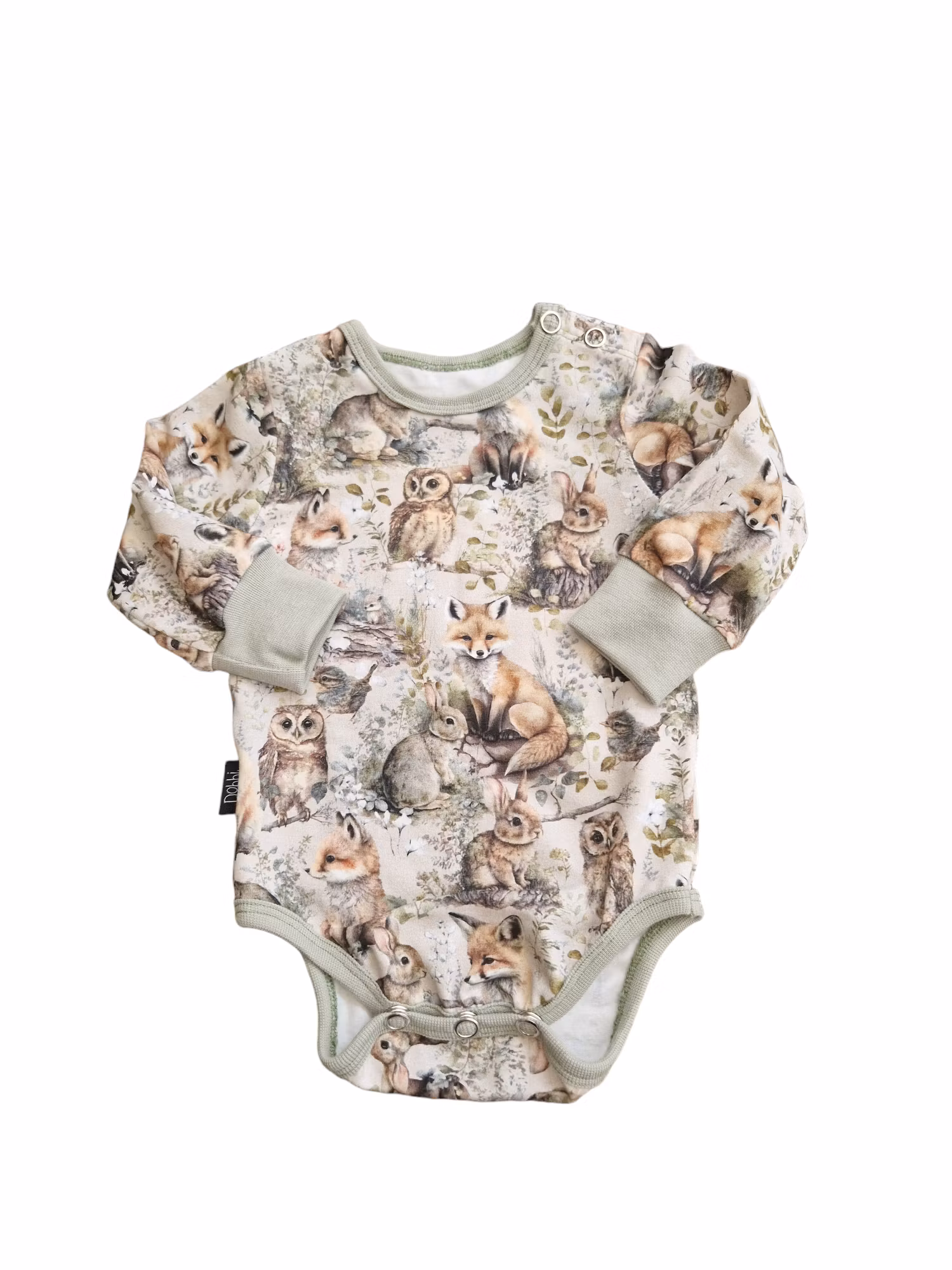 Body 200 kr Stl 62 68 Lägg i korgen Body med små djur. Knäppning på ena axeln, nickelfria tryckknappar.