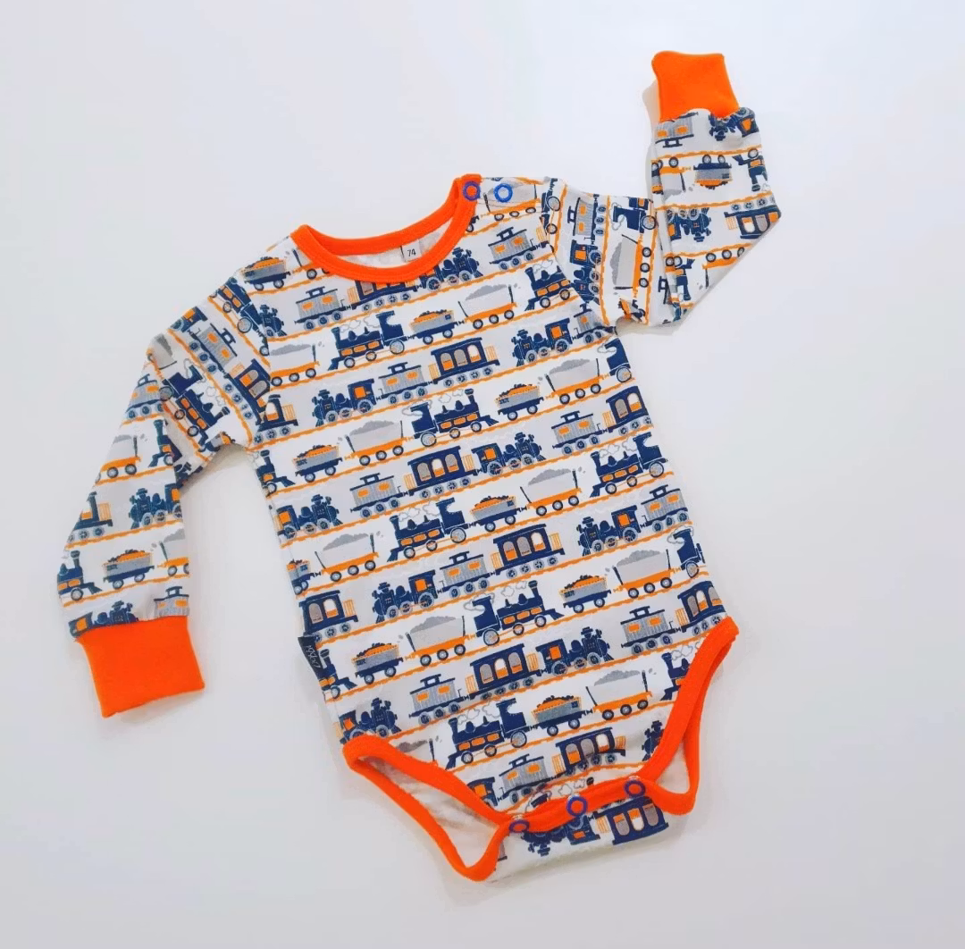 Body med tåg. Knäppning på ena axeln, nickelfria tryckknappar