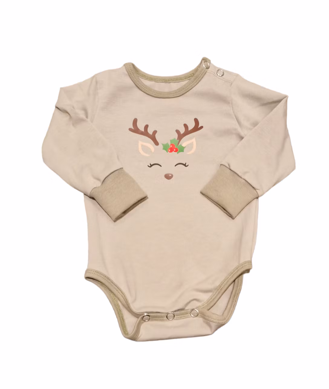 Body 220 kr Stl 62 68 74 80 Lägg i korgen Dimgrön body med en ren på bröstet. Knäppning på ena axeln, nickelfria tryckknappar