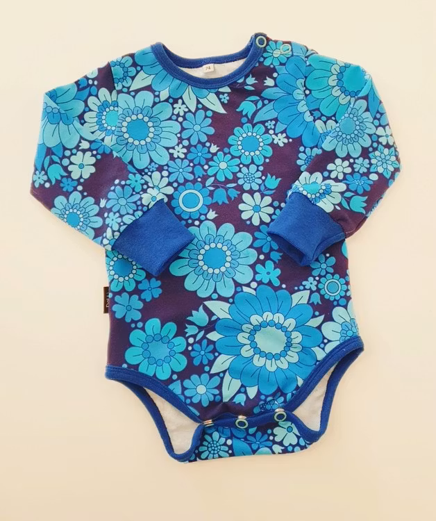 Body 200 kr Stl 74 68 Lägg i korgen Blå blommig body med knäppning på ena axeln. Nickelfria tryckknappar