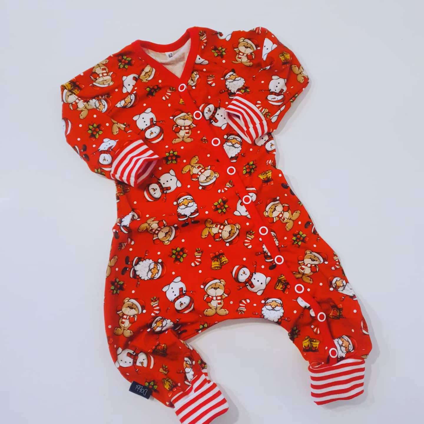 Baggydress 250 kr Stl 50 56 62 68 Lägg i korgen Röd heldress med tomtar och snögubbar. Nickelfria tryckknappar