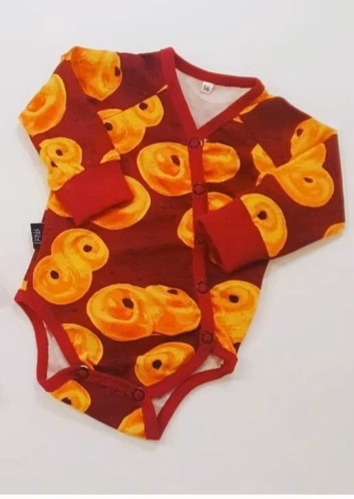 Body 200 kr Stl 50 56 62 68 Lägg i korgen Vinröd body med lussebullar. Knäppning på hela framsidan, nickelfria tryckknappar