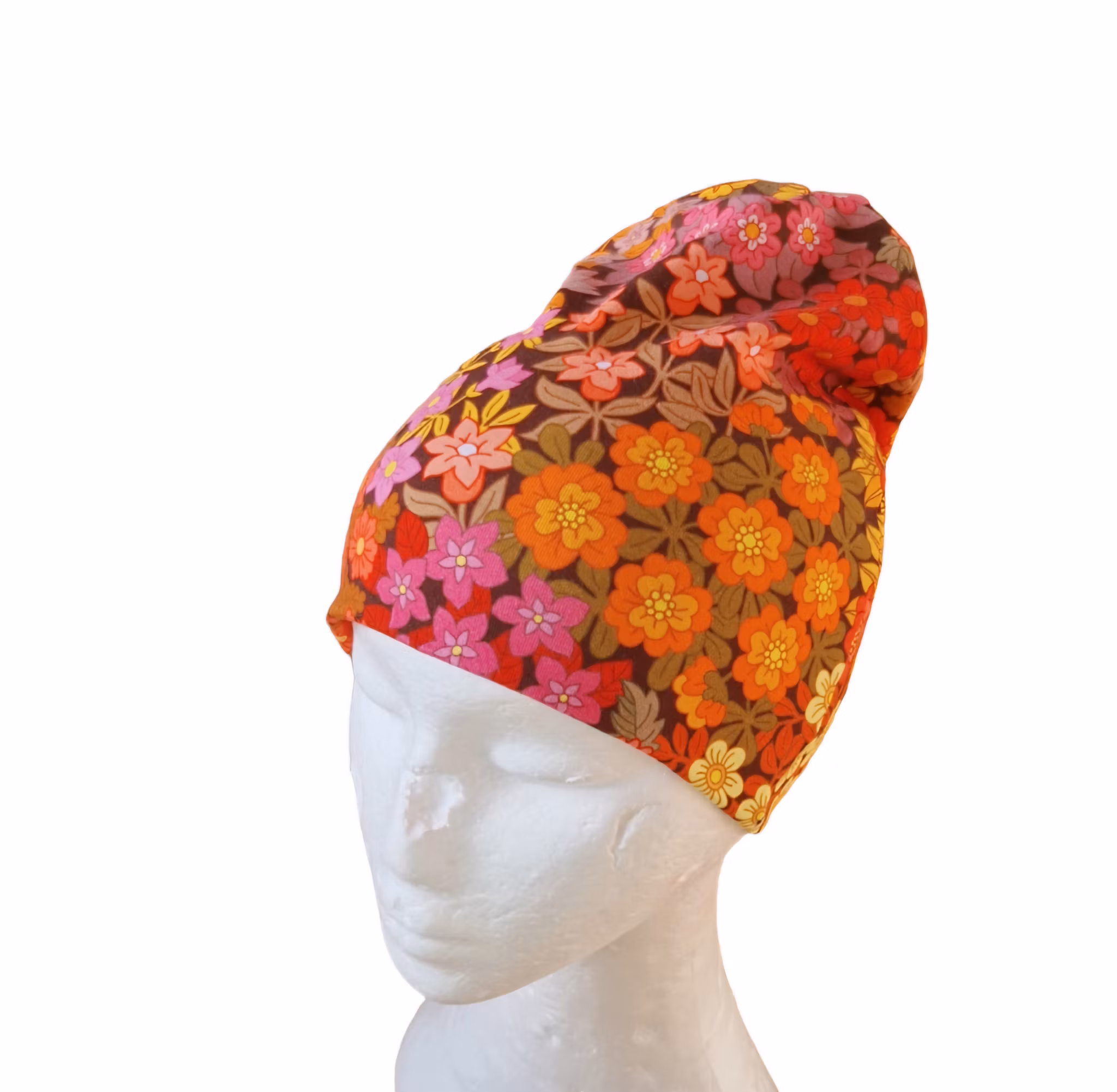 Blommig trikåmössa